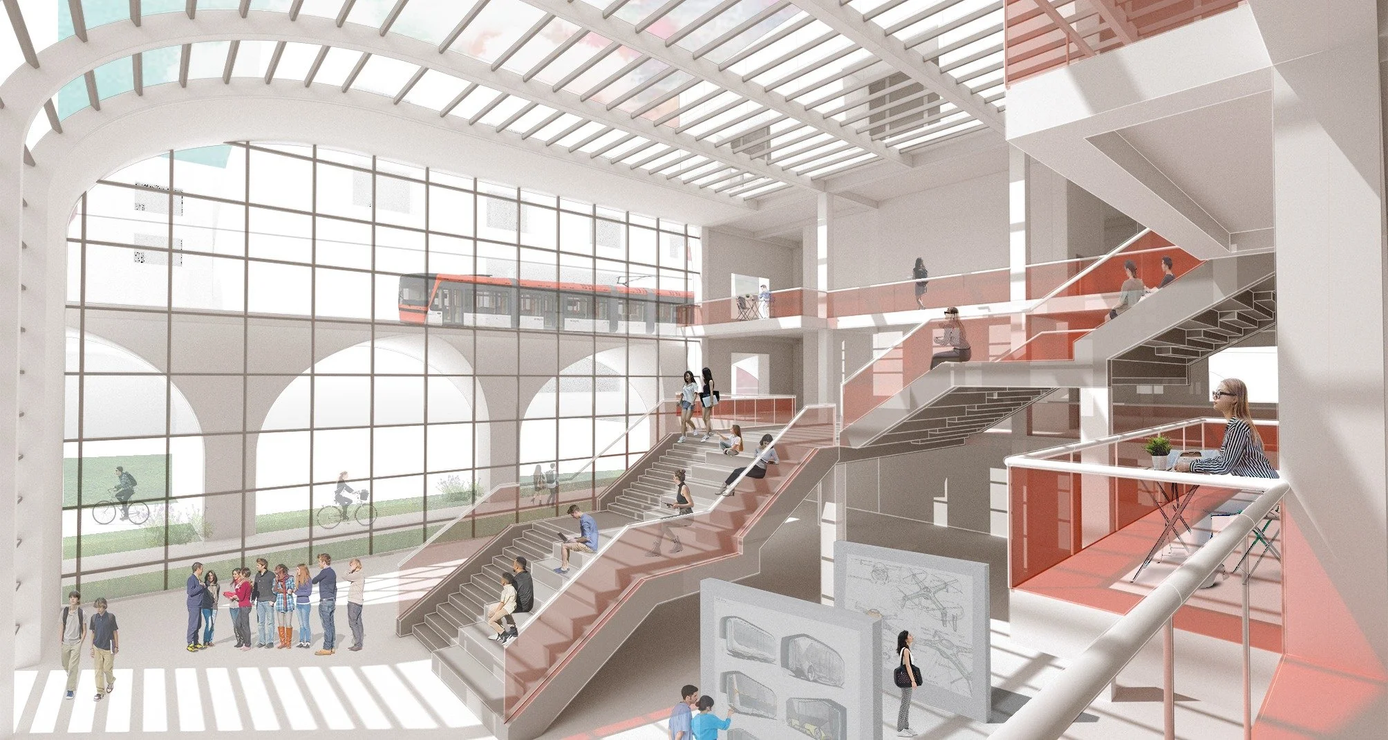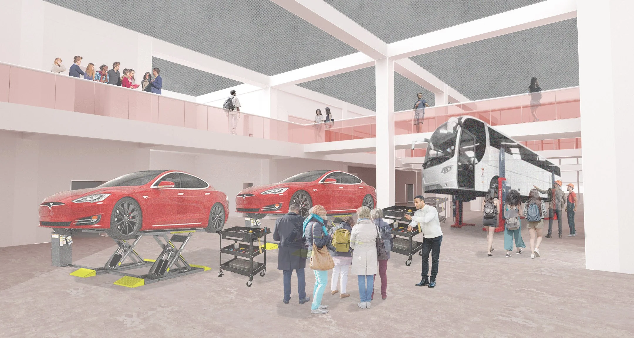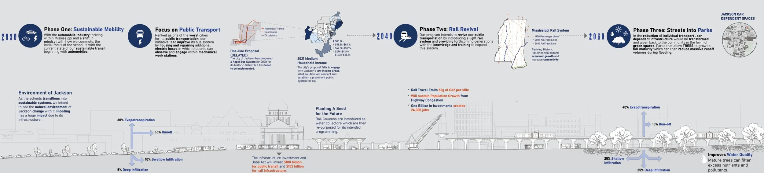 This project is a public boarding school that looks to implement sustainable transit in the city of Jackson, MS which is primarily known for its automotive manufacturing industry. With programs such as automotive engineer, automotive technician, political sustainability, sustainable energy, and master planning the school looks to teach young students how to implement more eco-friendly designs into the community. This school includes a transit hub for light-rail transit to be implemented throughout the city and revive the previous railroads that are no longer used.